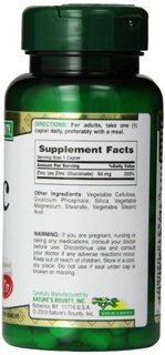 这款NATURE'S BOUNTY葡萄糖酸锌,每粒中含有葡萄糖酸锌50mg,能有效补充人体所缺的锌类营养元素,能改善厌食的症状,吃饭多了,营养不良的情况也会一并改善,并且维生素A的新陈代谢离不开锌,锌又可以和维生素C结合,帮助完成体内胶原带白的合成,所以补锌还可以应对肌肤问题,对痤疮等症状有一定治愈效果,还能加快伤口愈合,对性器官发育也有帮助。规格100粒,成人每天摄入锌的含量约为15mg,所以成人每天服用1粒即可有效补充身体所缺的锌元素,建议饭后服用。不过锌不易过量哦,还是食补最最安全,购买还需参照医嘱。