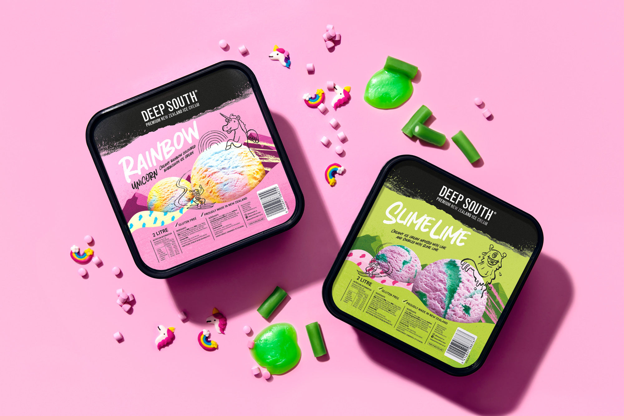 Deep South 冰淇淋于 1978 年在新西兰南岛成立,现已成为一个标志性品牌,拥有多种口味和款式,可满足广大消费者的需求。它目前的设计涂装已经成为一种标志性的涂装,虽然有点笨重,但它有着明信片般的南岛风景。这些说明了该国的出处和自豪感,但往往难以传达包装信息和柔和的颜色编码。